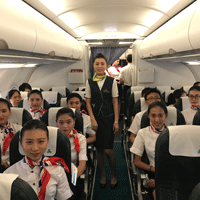 恩知教育“空中课堂”,空乘学员在真实环境下上课,体验式教学使学员对专业更加清晰.